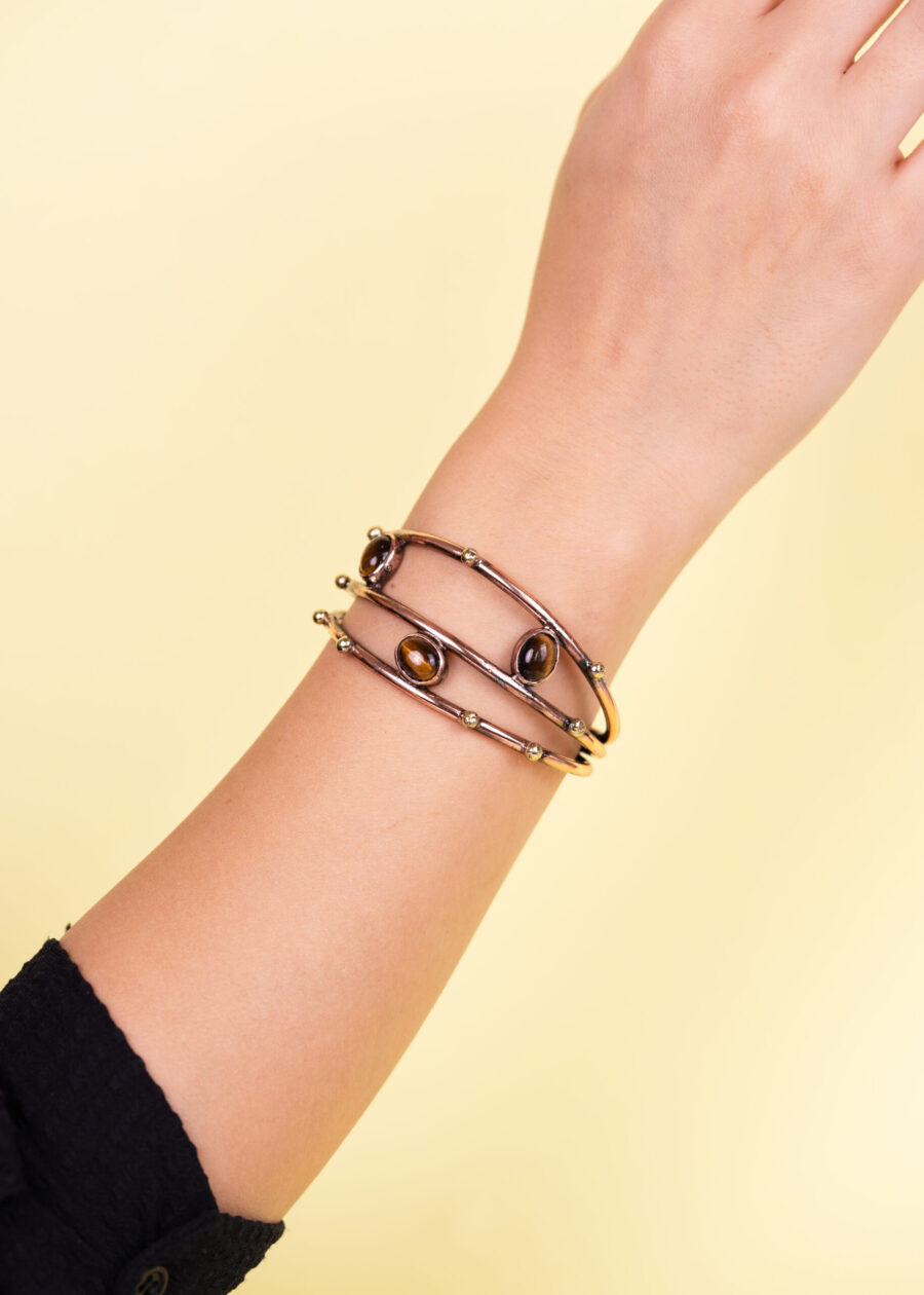 Kaplan Gözü Doğal Taşlı Bakır Bileklik