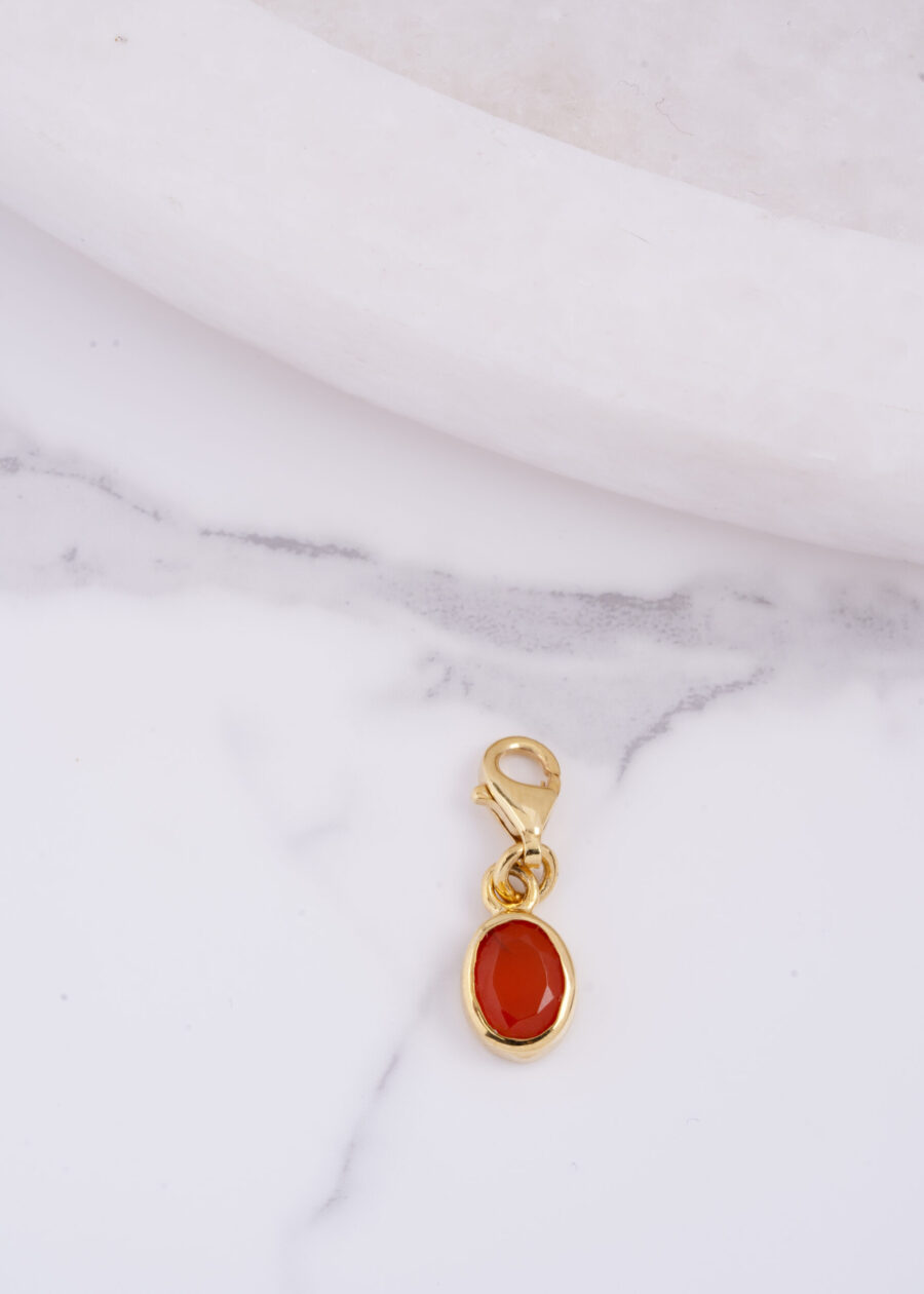 Altın kaplama dokusu, akik taşının doğal güzelliğini ön plana çıkarırken, charmı hem günlük kullanıma hem de özel davetlerde şık bir tamamlayıcıya dönüştürür. Bileklik kolye veya kişisel tasarımlarınıza zarif ve anlamlı bir detay katmak isteyenler için ideal bir seçimdir. Oval formu ve altın ışıltısıyla zamansız bir şıklık sunar.